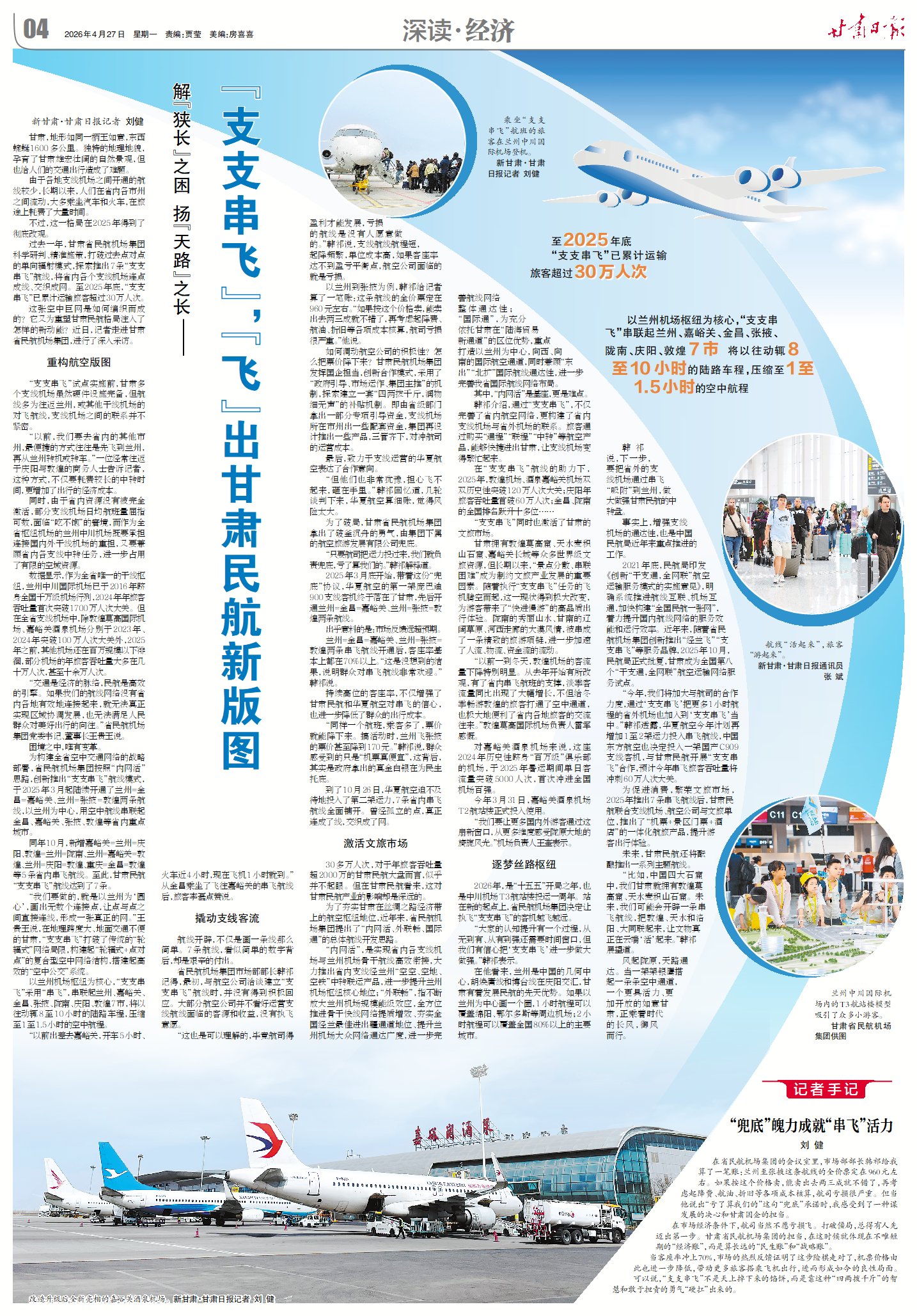 【甘快看】解“狭长”之困 扬“天路”之长——“支支串飞”,“飞”出甘肃民航新版图