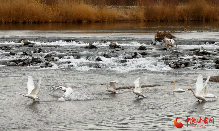 近年来,张掖市加大黑河流域生态保护,黑河成为大多数鸟类越冬生活的理想乐园。