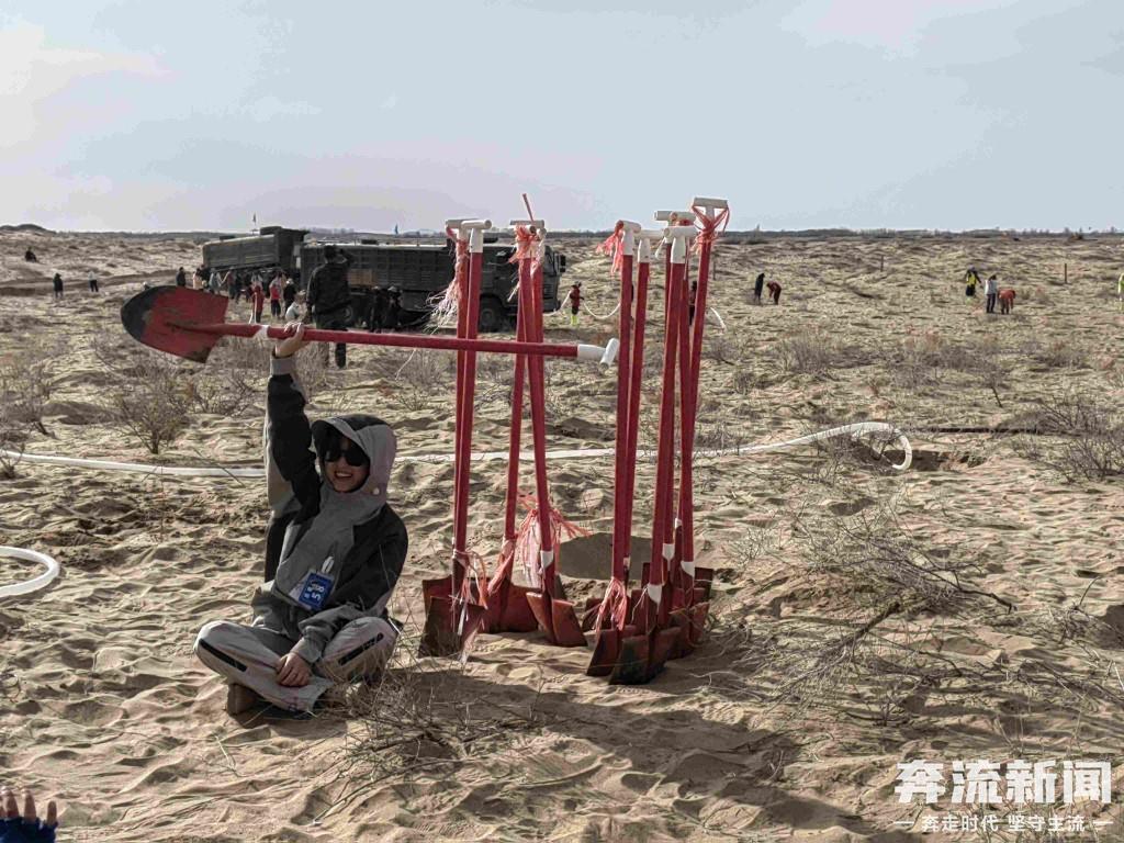 这是师馨的首次沙漠植树之旅。“以前只从电视上看到过沙漠,听说过民勤治沙行动,真的来了参与其中,和伙伴们一起行动,就是给自己的人生增添了不同的色彩。”