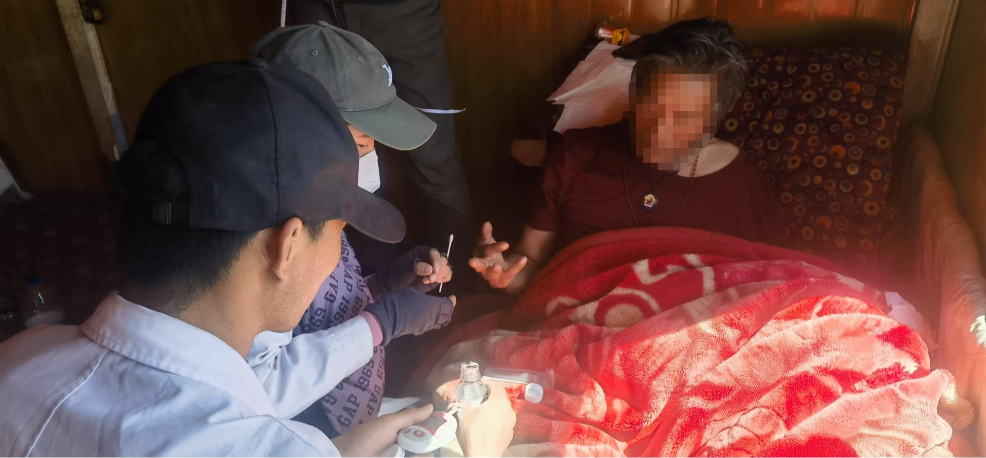 医护人员上门为老人检查身体(玛曲县委宣传部供图)