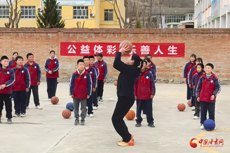 甘肃体彩甘南分站工作人员化身临时体育老师,教孩子们正确使用器材,组织大家进行篮球比赛、跳绳比赛等趣味活动。