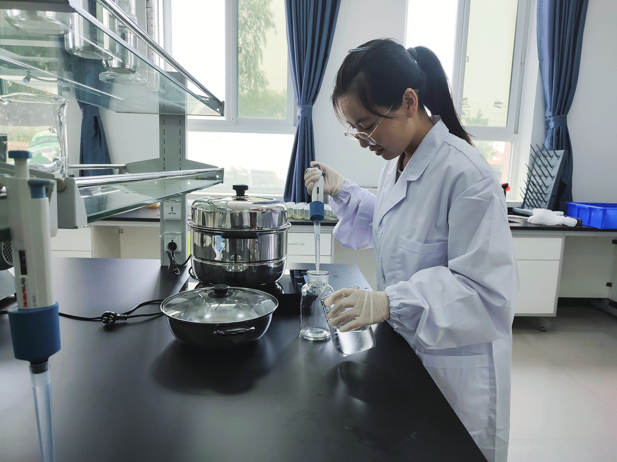 研究人员在灵台县苹果试验示范中心组配实验室配制基质(灵台县融媒体中心供图)
