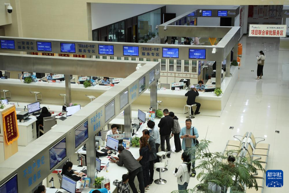 在甘肃省玉门市政府服务中心,人们在办理业务(2025年5月22日摄)。新华社记者 张智敏 摄