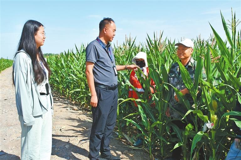 张掖市甘州区沙井镇纪委工作人员在东沟村田间地头与群众交流。张掖市甘州区纪委监委供图