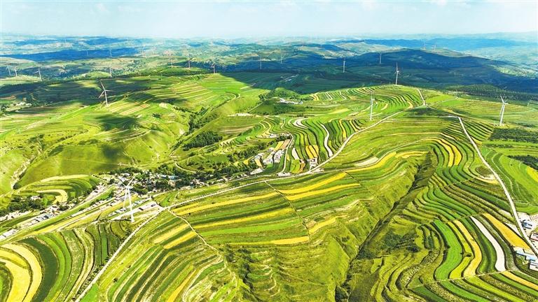 通渭县华家岭镇层层梯田犹如一幅美丽的画卷。新甘肃·甘肃日报通讯员 张 赛