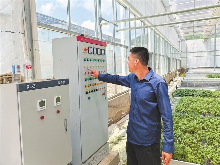 “温度有点高,30摄氏度为宜。”工作人员观察到温室里显示温度为35摄氏度、湿度为40RH,点击控制系统相关按钮,温室四周安装的雨帘“嗡嗡”启动,风扇飞速转动,传来阵阵凉意。