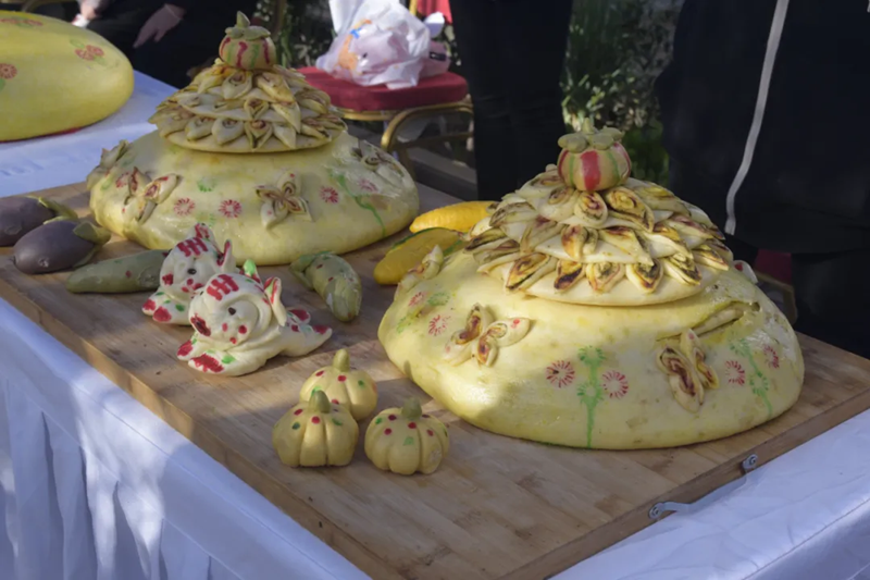 当农民丰收节的喜悦邂逅中秋节的团圆,各镇展出的凉州大月饼,以“车轱辘大”的尺寸和“农特产品”的造型,将家乡人民的丰收之喜与远方游子的思乡之情揉进了田园麦穗的香气之中,将凉州美食文化的传承揉进了圆润饱满的面点之中,更将“城头月出照凉州”一轮故乡的明月具象化融进了每一位游子的味蕾之中。