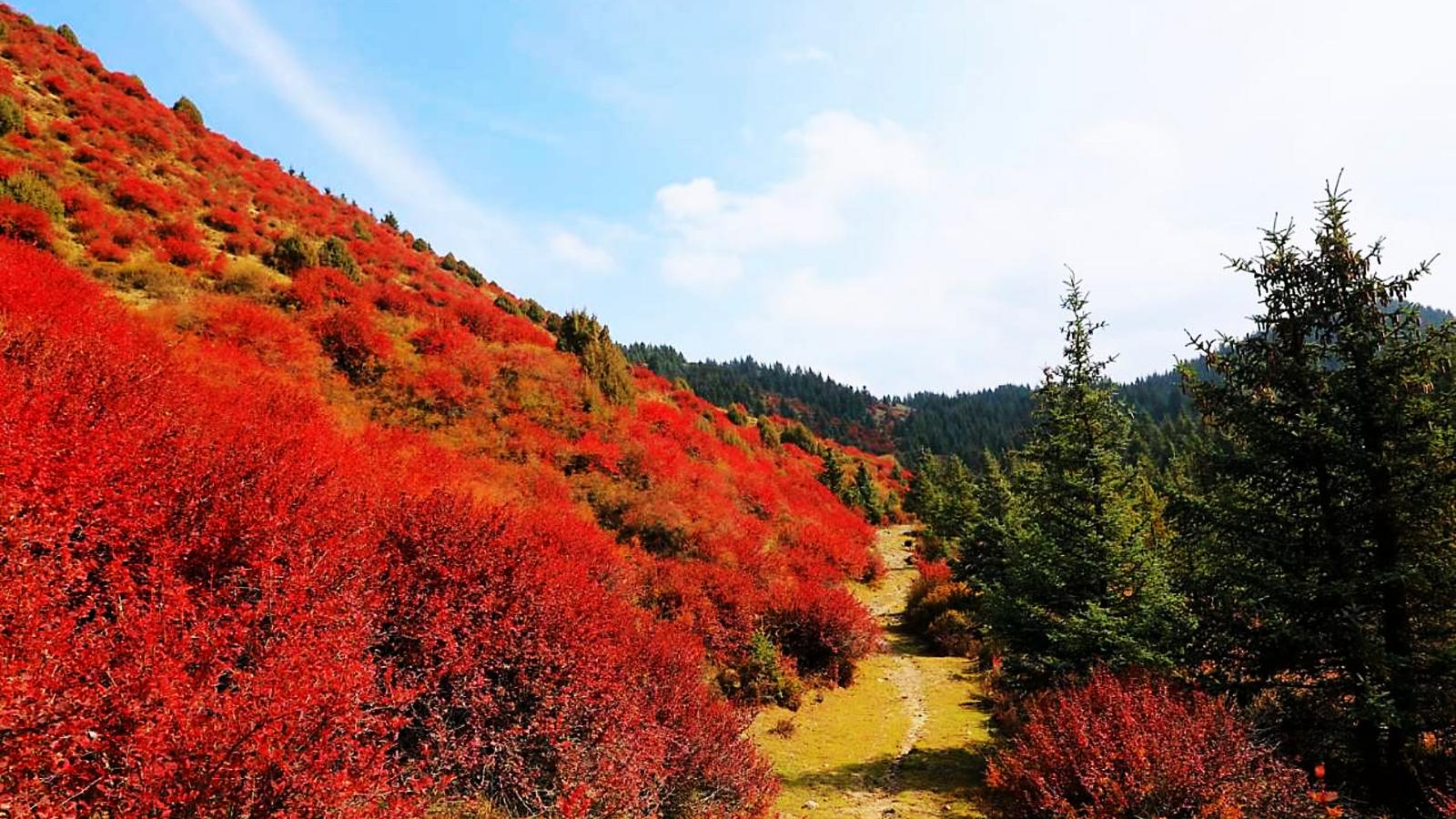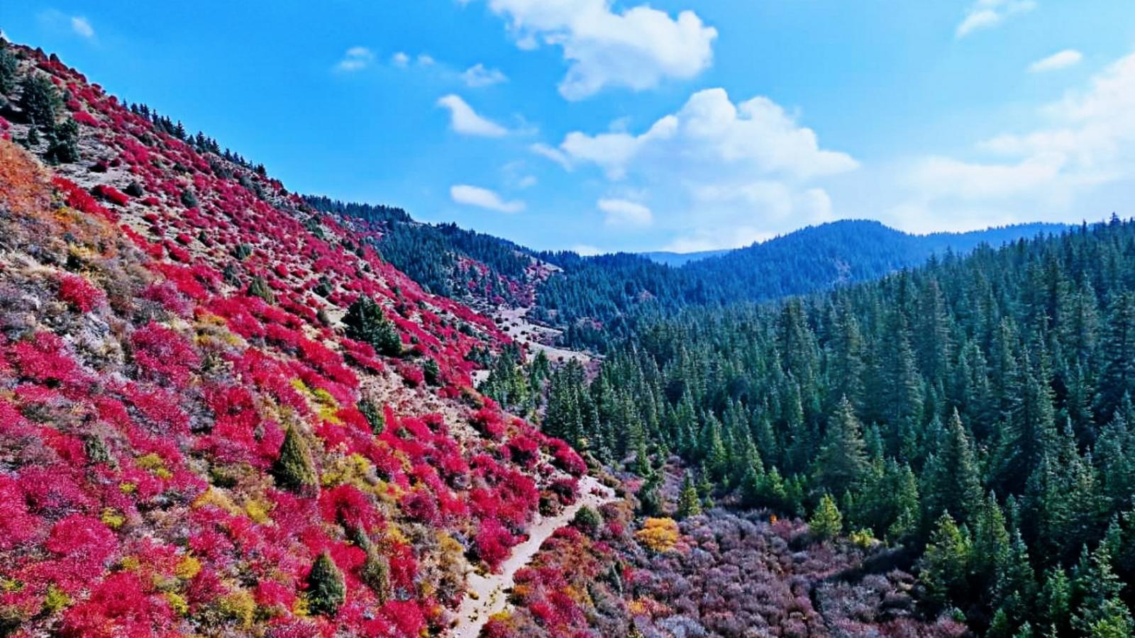 焉支山这一年的秋,枫叶流丹,层林如染。