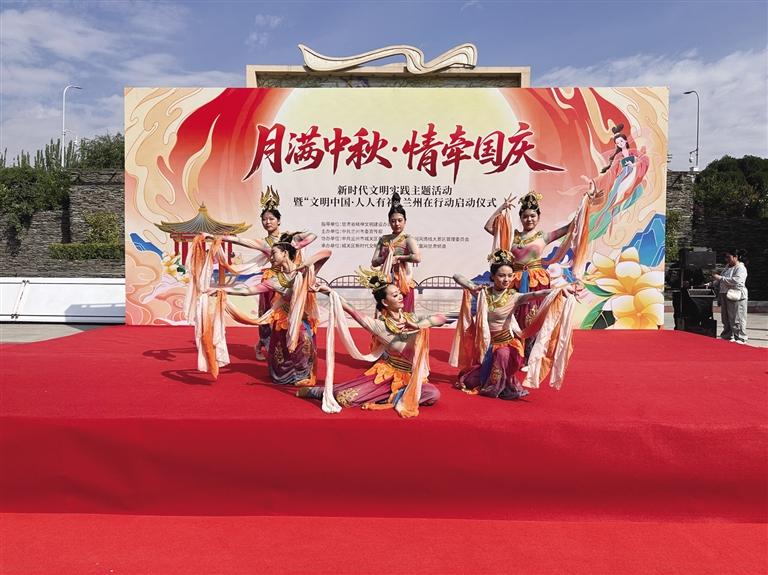中国甘肃网10月1日讯 据兰州晚报报道 9月30日,“月满中秋·情牵国庆”新时代文明实践主题活动暨“文明中国·人人有礼”兰州在行动启动仪式在兰州市民公园举行。活动在甘肃省精神文明建设办公室指导下,由中共兰州市委宣传部主办,旨在以文化展演与文明倡导相结合的方式,营造喜庆祥和、文明有序的节日氛围。