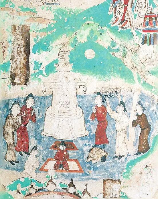 遥望皎皎明月,祈福人间清欢。中秋这天,古人还有拜月祈福的习俗。莫高窟第103窟佛顶尊胜陀罗尼经变之拜塔记录的便是人们拜月、赏月的场景。