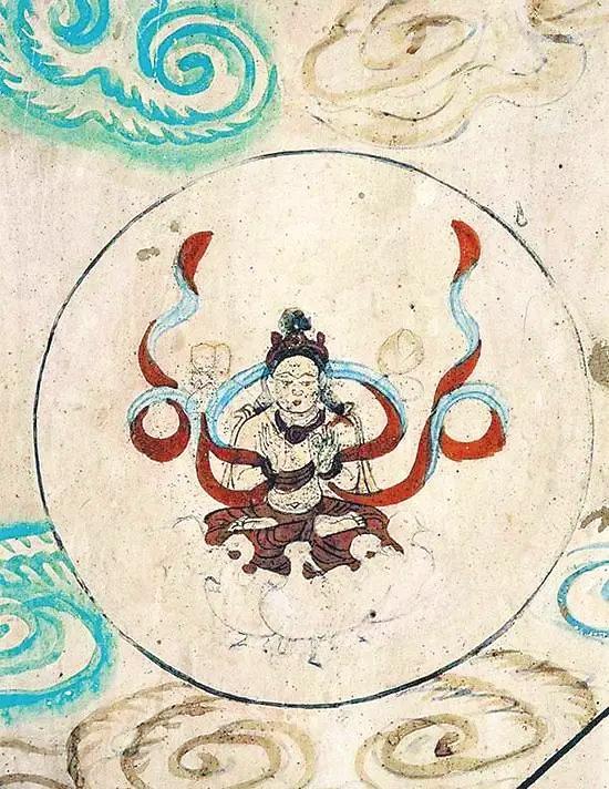 在莫高窟第384窟,月光菩萨乘于鹅座,手持月轮,端坐于月亮之中,画面灵动、唯美。