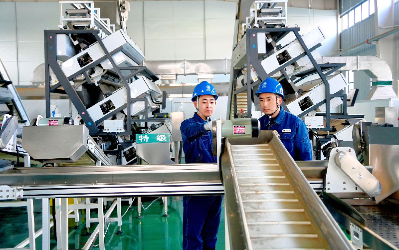 国网金昌供电公司城区分公司员工走进果业洋葱加工基地,对用电设施并向企业负责人宣传安全知识。张前 摄