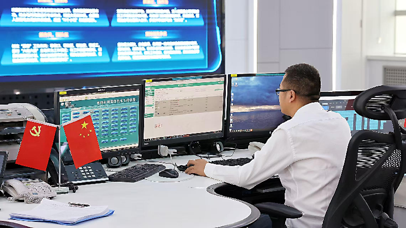 国网兰州供电公司电力调度中心员工实时监测节日期间电网运行状况。李小东 摄