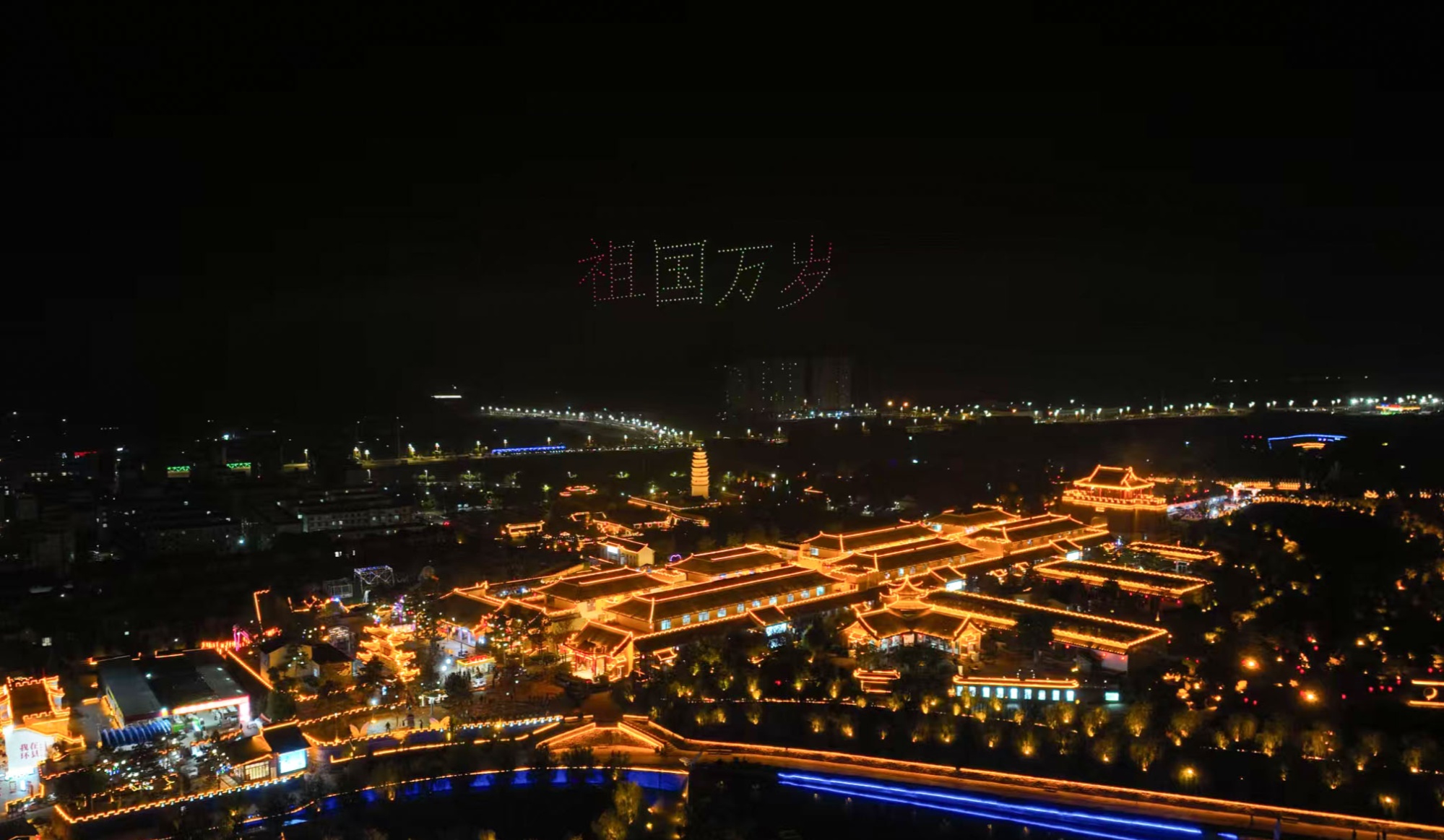 无人机秀亮相环州故城(环县融媒体中心供图)