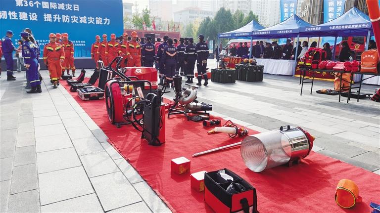 兰州市举办国际减灾日集中宣传活动现场展示的消防救援器材