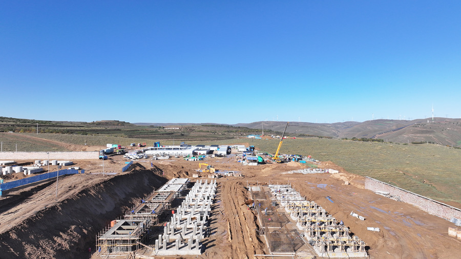 甘肃电投集团庆阳“绿电聚合”试点项目抢抓进度开展风机承台浇筑。张建兵摄
