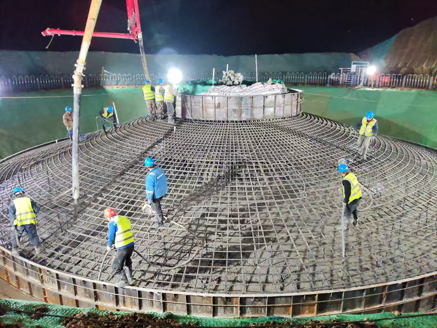 甘肃电投集团庆阳“绿电聚合”试点项目储能设备区基础混凝土浇筑。胡国武摄