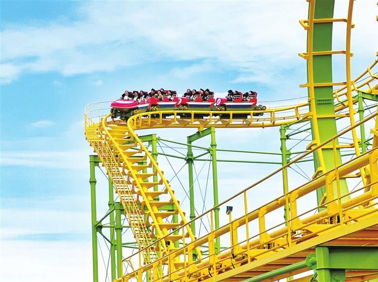 游客在塔尔湾欢乐世界体验过山车。金奉乾