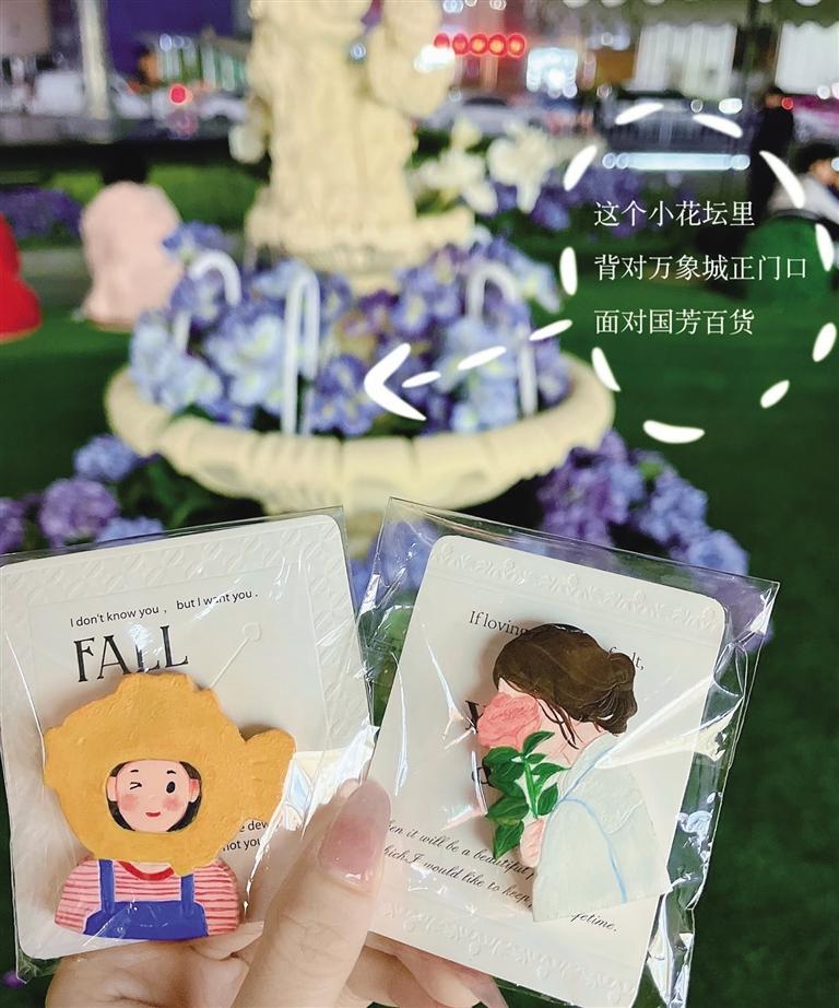 与“牛肉面加蛋”的浩荡声势不同,90后女生“07”是一名热爱手工的插画追梦人,正一步步向职业插画师的身份靠近。前不久,她将自己亲手绘制、精心制作的石塑粘土冰箱贴,悄悄藏进城关一家商场雕塑的门角缝隙里。一天之内,她就收到了第一条寻宝反馈:“找到了!好可爱!谢谢你。”