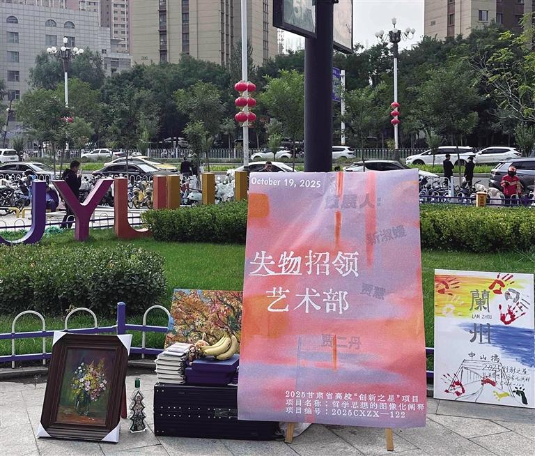 兰大研究生学习设计的“失物招领艺术部”城市行为艺术展吸引市民驻足