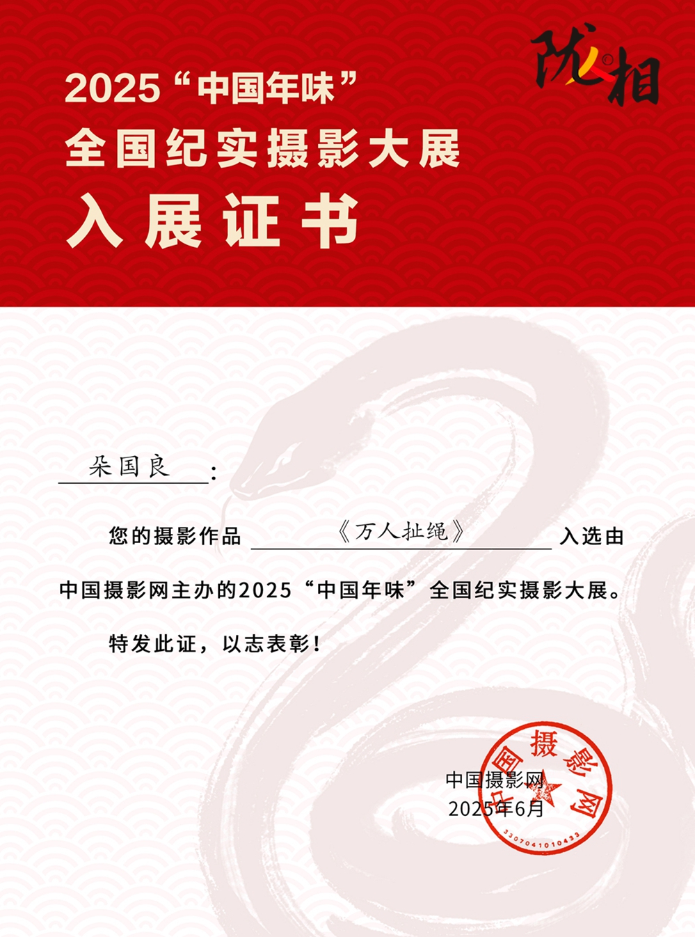 朵国良的镜头里,以山水做衣,以故土为魂。他绞尽脑汁地想尝试一种方式,那就是让这些美丽的照片,栩栩如生地诉说一切,而不是仅仅停留在照片本身。因此,当万人沉醉在欢呼雀跃间时,他一个人怀抱相机,冒着寒风,穿梭在熙熙攘攘的人群间,寻找更为令人心动的时刻。正月里的元宵节“万人扯绳”是临潭暂停17年后再次举办的盛事——上万人攥着百米长的绳索,在锣鼓声中齐声呐喊,脸上的笑容比年味更浓。他拍的《万人扯绳》后来入展2025“中国年味”全国纪实摄影大展,在各级媒体平台展出,让临潭独特的民俗风情被全国看见;他拍草原上的格桑花,拍庄稼地里的青稞,拍临潭最美的秋日梯田,每一张照片都像在诉说:“这就是我的故乡,有烟火气,有生命力。”他的画面里,临潭的夏日草原蓝天如洗,野花铺地,远处的牛羊像散落的星辰,那是他心中故乡最美的模样。