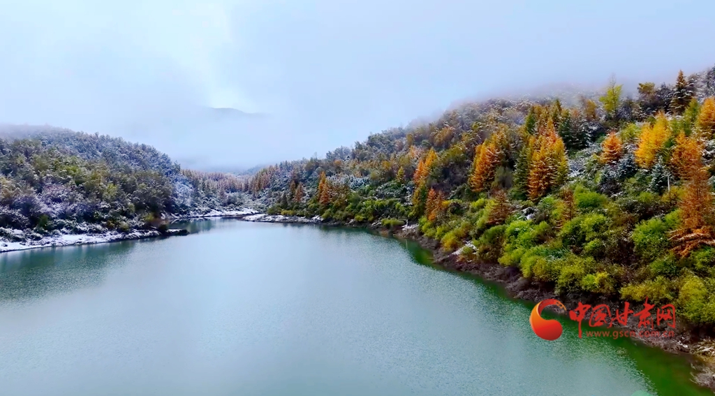 巍巍太子山主峰最先换上银装。翠色松枝穿插其间,让雄奇山巅更显嵯峨翠微。山腰的秋景尚未褪尽,白桦与落叶松的金黄、云杉与油松的墨绿、小檗与稠李的紫红,层层叠叠铺展在沟壑间。白雪轻轻漫过林梢,轻轻巧巧给这幅“美拉德”般醇厚的秋景镶上银边。