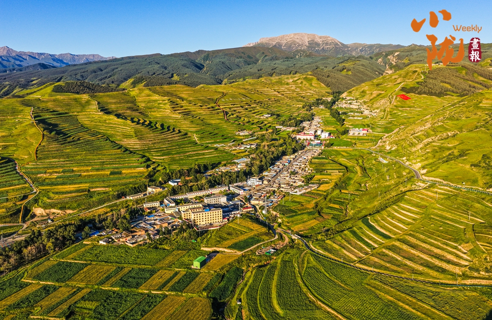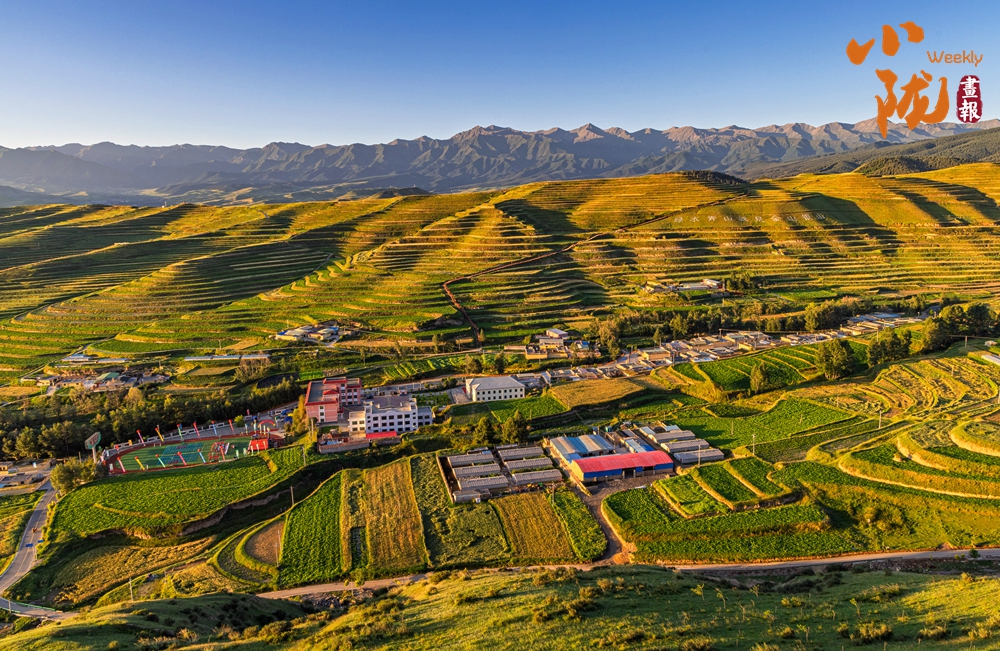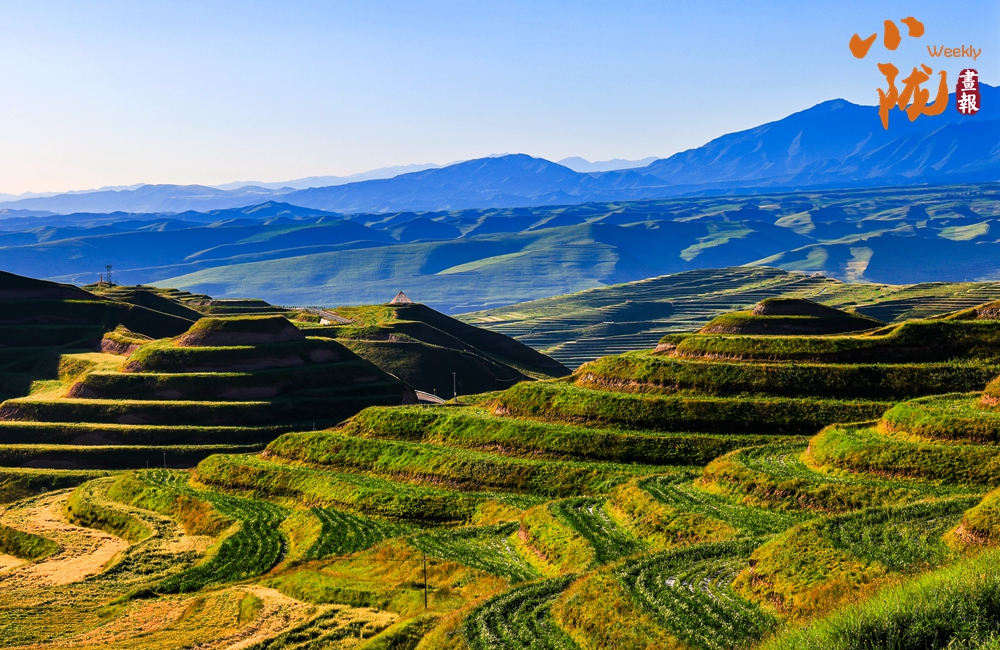 俯瞰那层层叠叠、高低错落的梯田,一种粗犷之美扑面而来。曲线蜿蜒如大地的指纹,把秋日的肌理揉得细腻。零星村庄嵌在田垄间,白墙黛瓦隐在黄绿交错里,每一眼都是藏在陇中深处的静谧。
