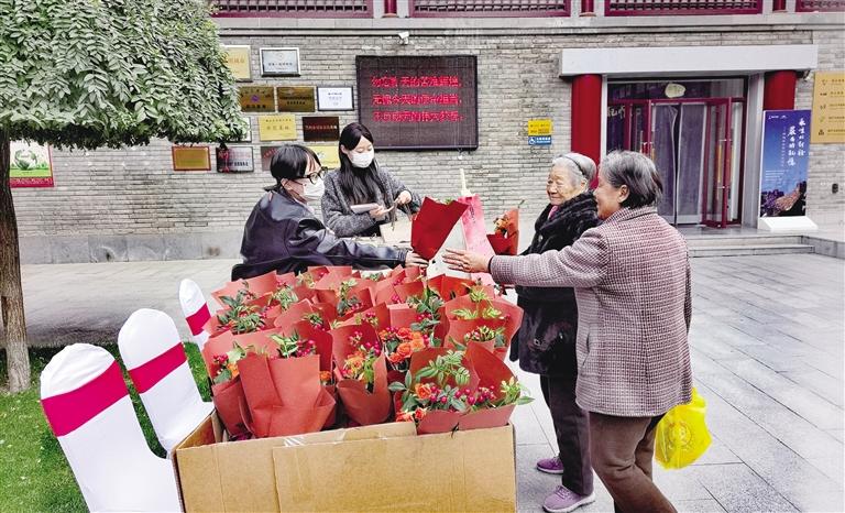 活动现场暖意融融,市博物馆的工作人员将提前定制的鲜花、印着博物馆标识的文创礼品等递到民勤街社区老人手中。接过礼物的老人们,有的忍不住举起鲜花向身边的同伴展示:“你看这花多好看,还有这小文创,拿在手里真洋气。”