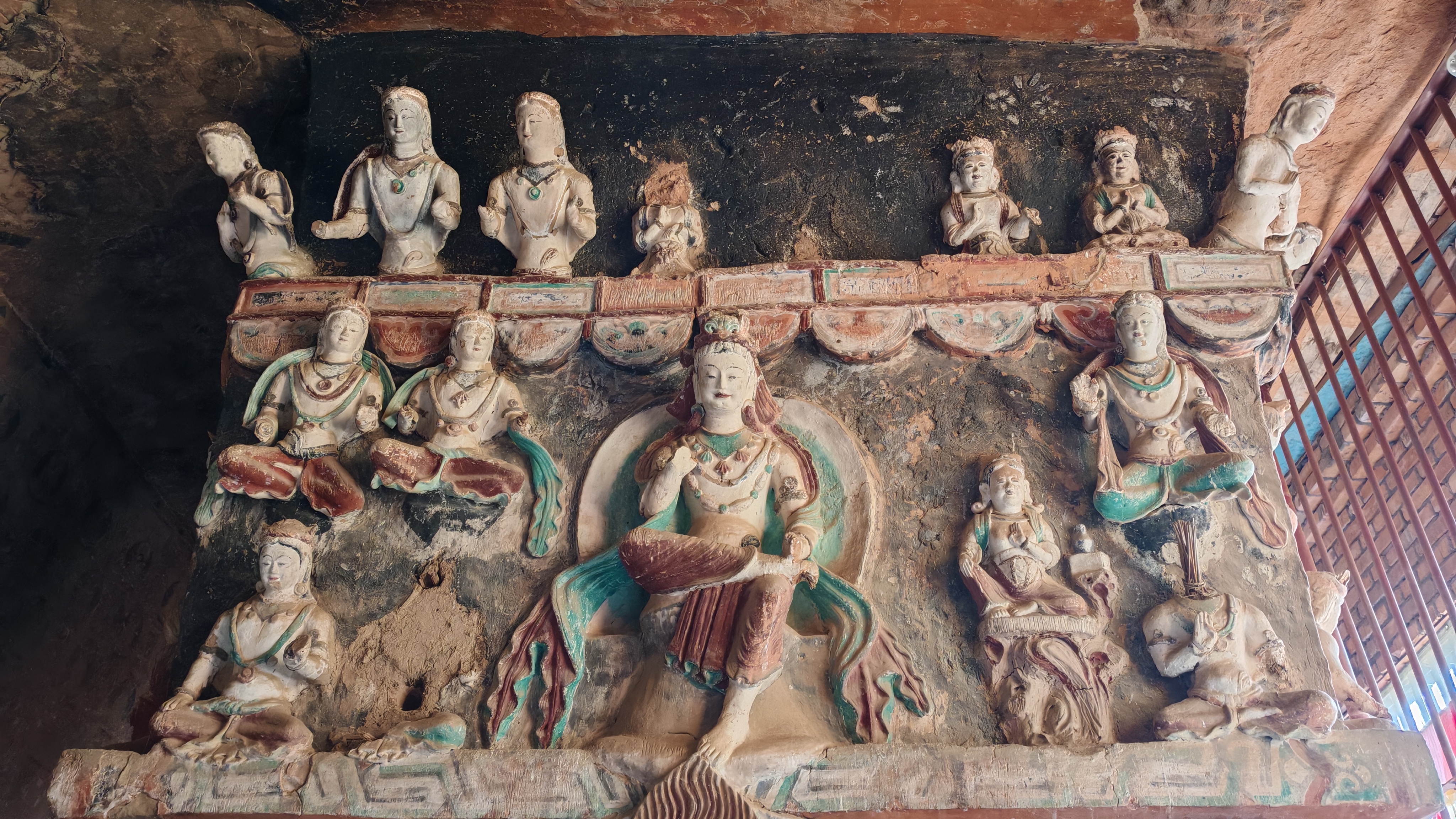在众多的艺术瑰宝中,金塔寺石窟内的立体“飞天”雕塑尤为夺目。它们突破传统壁画的平面限制,以生动的3D形态悬浮于壁面,完美展现了古代艺术家对理想美的追求,被著名考古学家宿白誉为“东方飞天之精华”。