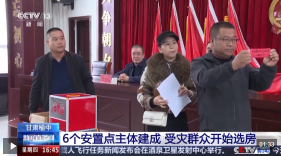 榆中县小康营乡党委书记 张娇龙:下一步,我们要帮助安置群众搬入新家,家电家具我们之前也通过捐赠的方式储备了一些,之后进行分发,保证让老百姓在春节前搬到新家。