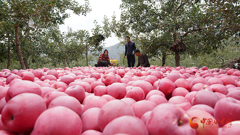金秋时节,成纪大地层林尽染,静宁县贾河乡的山地果园里更是热闹非凡。漫山遍野的苹果树枝繁叶茂,红彤彤的果实压弯枝头,刚采摘的鲜果整齐堆满地头,果香四溢;山间农机轰鸣、人声鼎沸,勾勒出一幅浓墨重彩的丰收画卷。