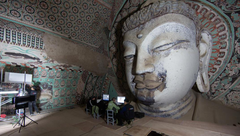 莫高窟第130窟壁画数字化采集工作照(敦煌研究院供图)
