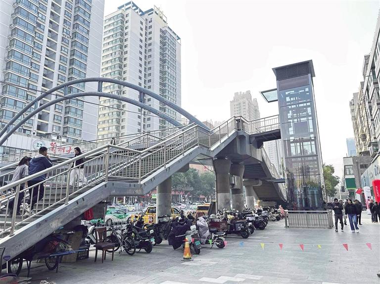 西站十字电信大厦附近人行天桥加装无障碍电梯完工