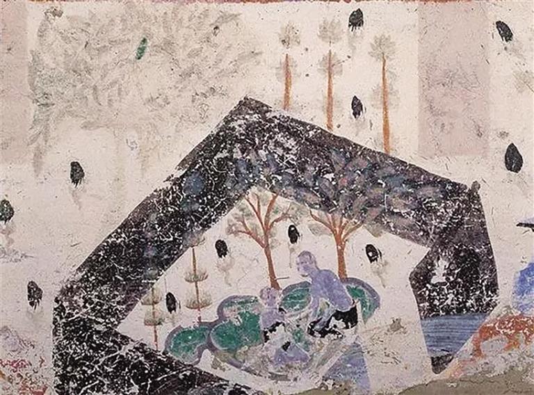 除了炭火取暖与容器加热,古人还有“温泉御寒”的雅致方式。莫高窟第302窟北周时期的“汤水浴”壁画,描绘了先民在冬日泡温泉的场景,画面中的浴池还配备完善的引水、排水系统。这种带有供暖设施的温室浴池,既能驱散寒意,更让冬日取暖多了几分惬意。