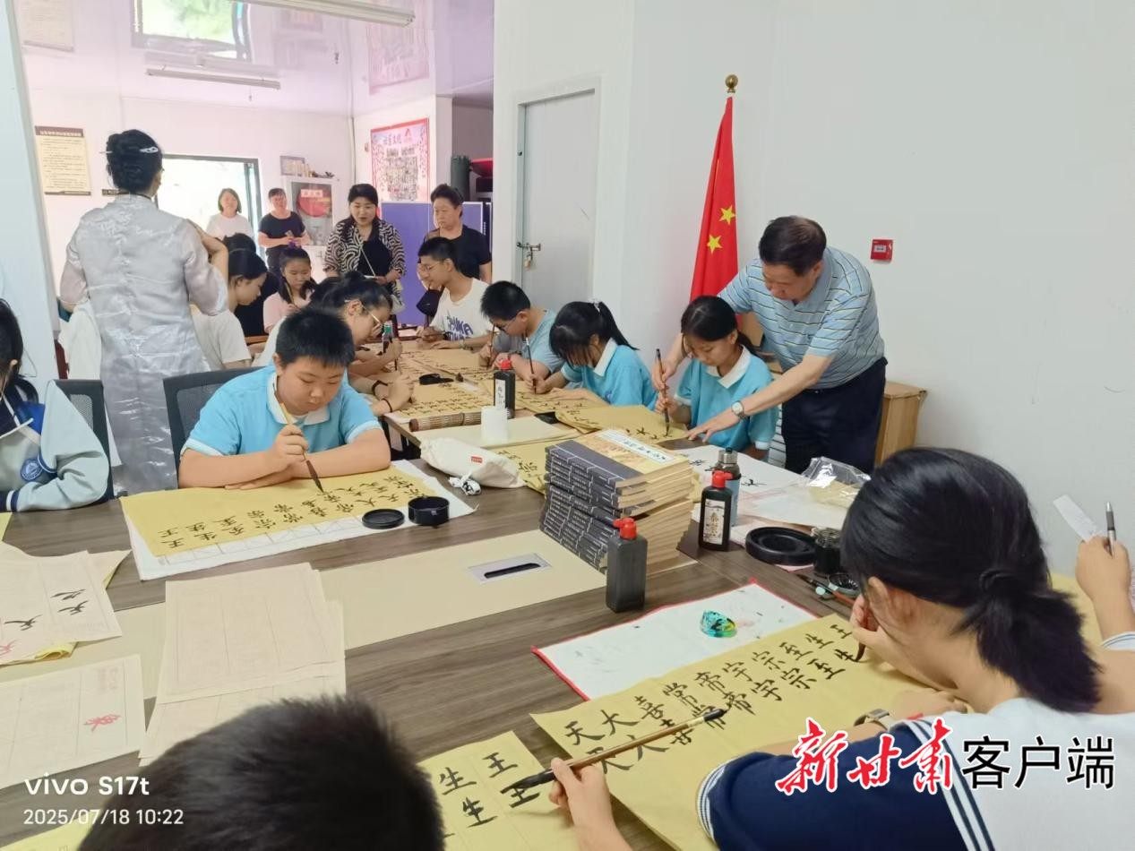 和政西街社区的未成年人书法课。(和政西街社区供图)