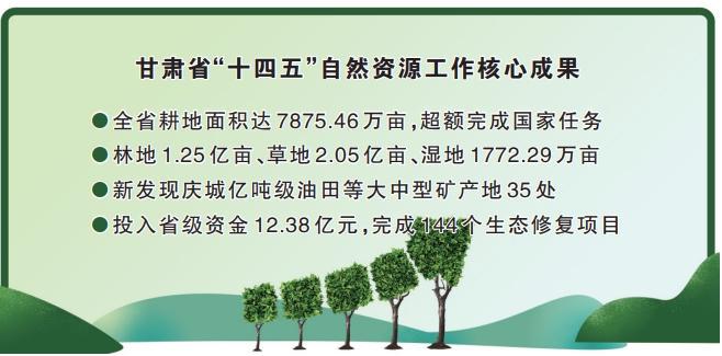 据介绍,截至2024年底,全省耕地保有量达7875.46万亩,林地1.25亿亩,草地2.05亿亩,湿地1772.29万亩,各类土地资源配置合理、保障有力;已发现各类矿产151种,查明资源储量105种,新发现庆城亿吨级油田、玉门前红泉金矿等大中型矿产地35处,水资源总量达261.44亿立方米,资源禀赋优势持续凸显。“十四五”时期全省实现土地出让价款1294.93亿元,矿业权出让成交总价601.87亿元;累计争取中央财政专项资金130.52亿元,省级非税收入入库127.4亿元,较“十三五”增长101.23%;通过城乡建设用地增减挂钩节余指标跨省域交易获得资金44.58亿元,为27个脱贫县巩固发展提供坚实支撑。不动产登记服务高效便民,累计办理各类业务1005万笔,贡献相关税收超190亿元;办理不动产抵押登记122.56万笔,助力企业群众融资贷款1.38万亿元,有效激活市场活力。