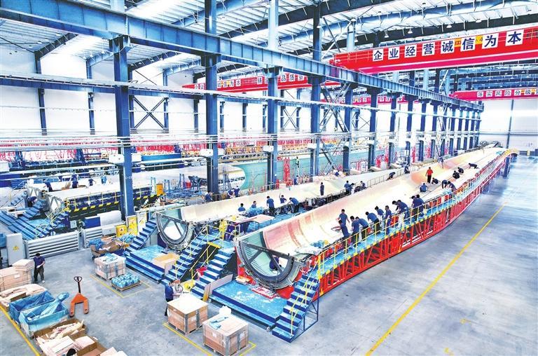 甘肃重通成飞新材料有限公司风机叶片成型车间。
