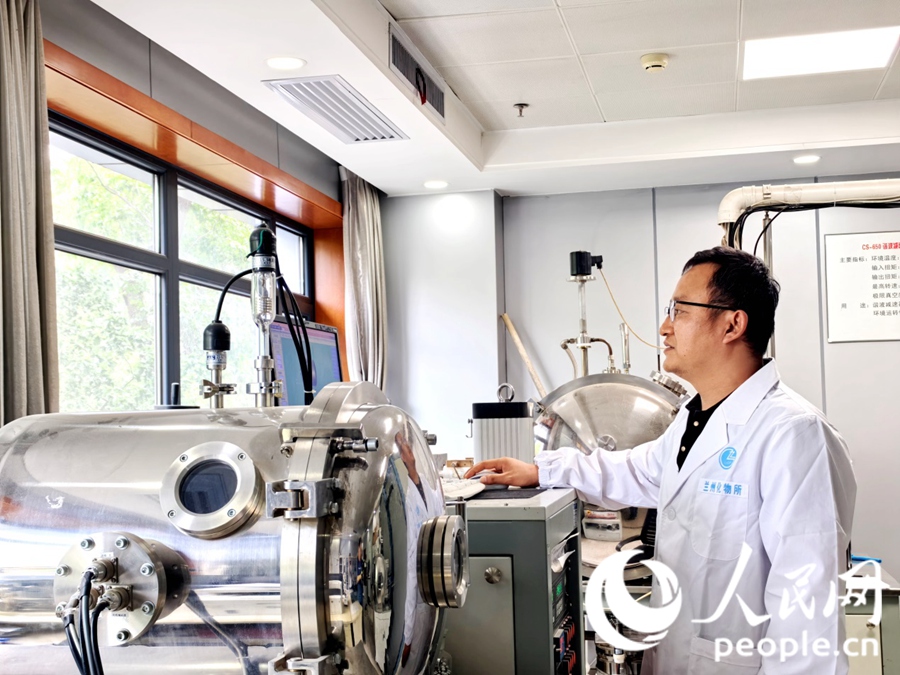 中国科学院兰州化学物理研究所实验室内,研究人员正在查看相关监测数据。人民网记者 高翔摄