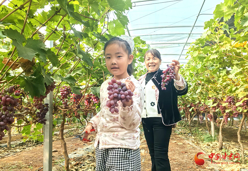 在大棚内,游客们手持剪刀、拎着果篮,在藤蔓交错的葡萄架下穿梭。“这里的葡萄颜色鲜亮、果肉紧实,口感清甜多汁,带着外孙女来体验采摘特别有意义,摘的葡萄分给亲戚朋友尝尝鲜!”正在采摘的游客张女士笑着说道。