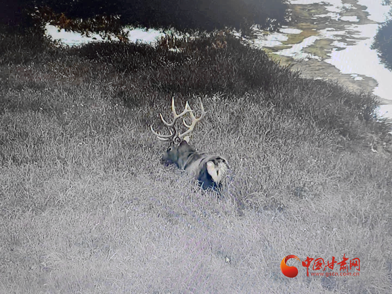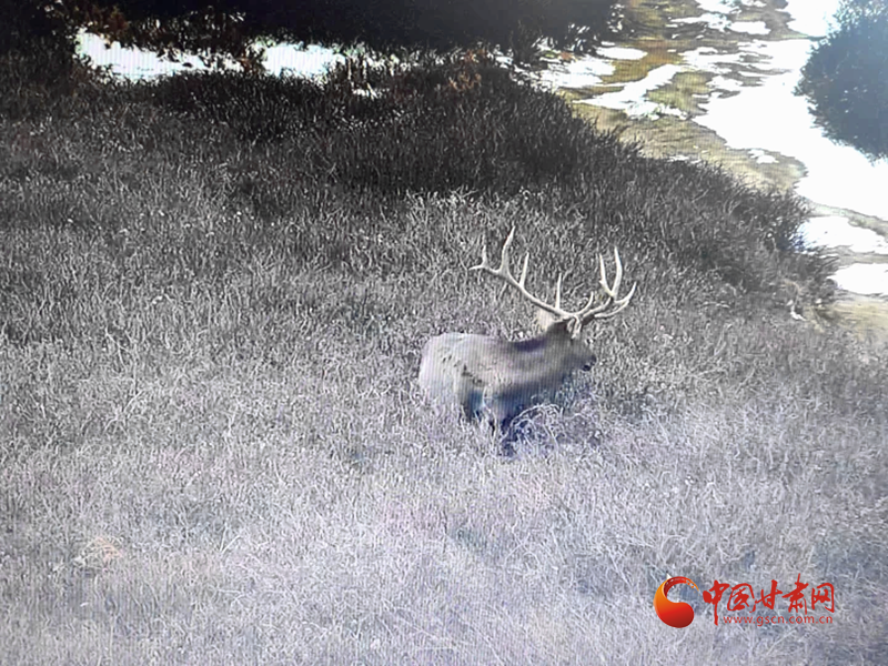 中国甘肃网11月24日讯(西北角·中国甘肃网记者 张慧雅 通讯员 龚晓玲 吴国虎)近日,祁连山管护中心东大山自然保护站危路沟资源管护站通过视频监控,清晰捕捉到一只雄性甘肃马鹿在祁连山草甸间悠然活动的画面。画面中,甘肃马鹿体型壮硕,鹿角分叉繁复。