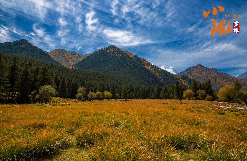 漫山遍野的草木披上金黄,与湛蓝的天空、澄澈的溪流相映成趣,形成独特而灵秀的高原风光。
