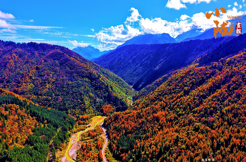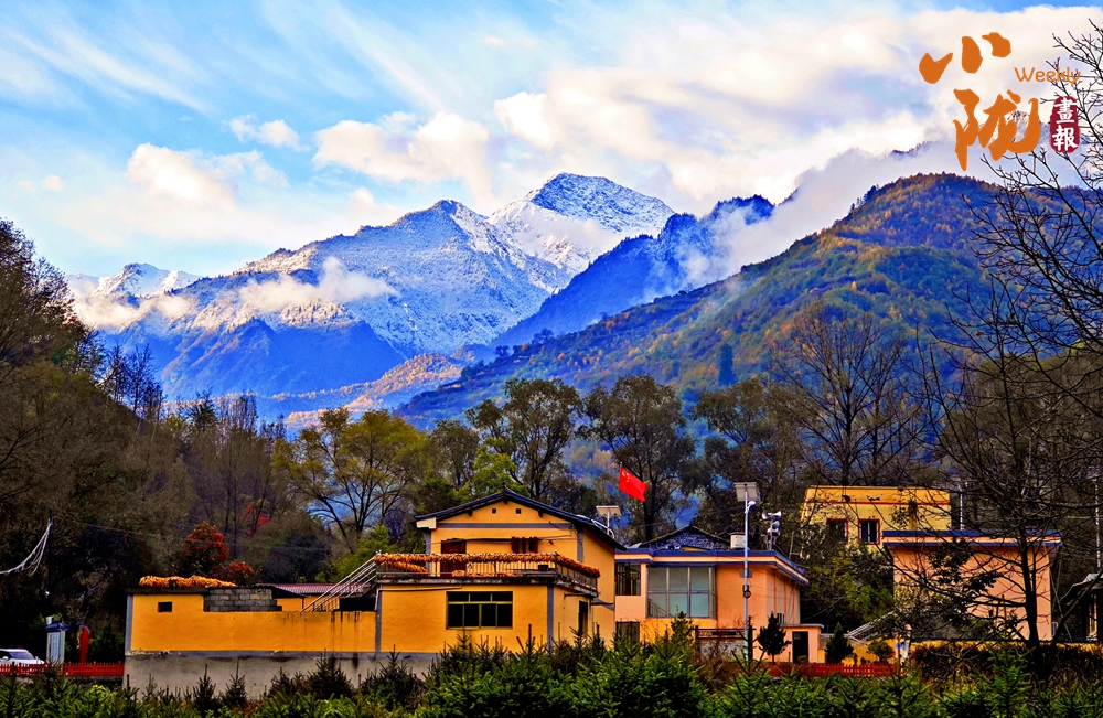 沟内彩林环抱藏寨,溪流波光粼粼,既有初冬的斑斓色彩,也有冰雪奇观的纯净之美。