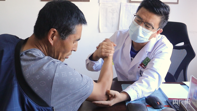 杨小军正在给患者检查(央广网发 李姝婷 摄)