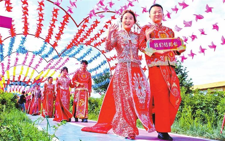 山丹县2025年“我们的节日·七夕”集体婚礼在老军乡玫瑰庄园举行。新甘肃·甘肃日报通讯员 王将
