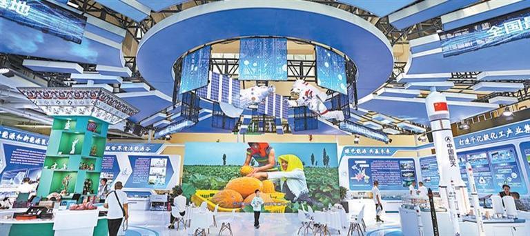 第三十一届兰洽会主展馆,充满航天元素与敦煌元素的酒泉馆。新甘肃·甘肃日报记者 田蹊