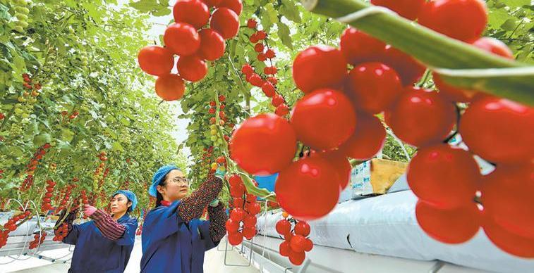 民乐县春禾智慧农业工厂智能温室内,樱桃番茄进入采摘期(资料图)。新甘肃·甘肃日报通讯员 王将