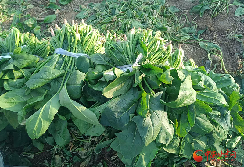 寒冬时节,华亭市安口镇朱家坡村蔬菜大棚里却是一派温暖如春、生机盎然的繁忙景象。一垄垄翠绿的菠菜长势喜人,叶片肥厚鲜嫩,菜农们正忙着采摘、分拣、装箱。这是安口镇大坪村今年在“飞地”大棚内收获的第二茬作物,继10月份螺丝椒喜获丰收后,3000斤新鲜菠菜即将批量上市,预计为村集体再增收入1.2万余元。