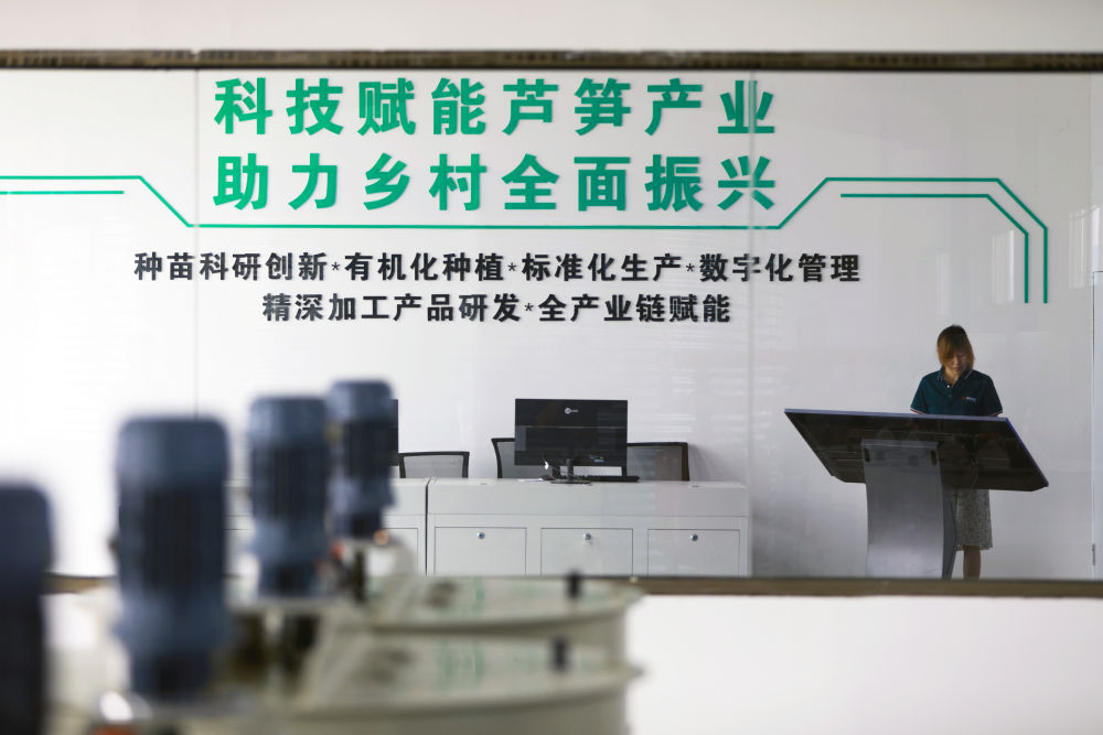 “今年芦笋平均亩产达1500斤,眼下我们正全力开展收获后首次园区养护,为来年丰产蓄力。”示范园负责人吴增刚说,依托企业自主研发的精准水肥质控中心,园区实现芦笋生长全过程水肥精细化管控,既节约了农业用水,又提升了芦笋产量与品质。“预计到2027年,芦笋将进入丰产期,届时亩产有望达到3000至4000斤,产业效益还能再上一个新台阶。”