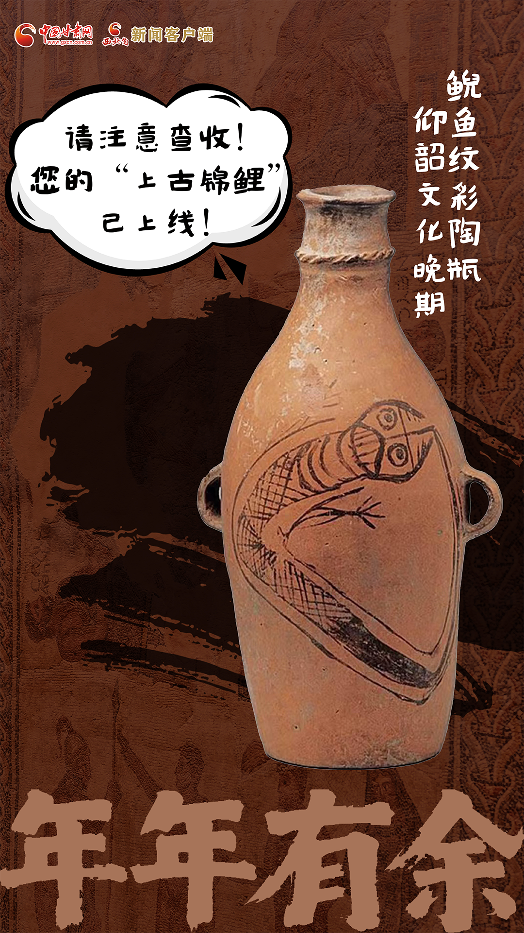 简介:器腹绘有独特的拟人化鲵鱼纹,被视为中华龙文化起源的实物例证之一,展现了新石器时代彩陶高超的艺术成就。