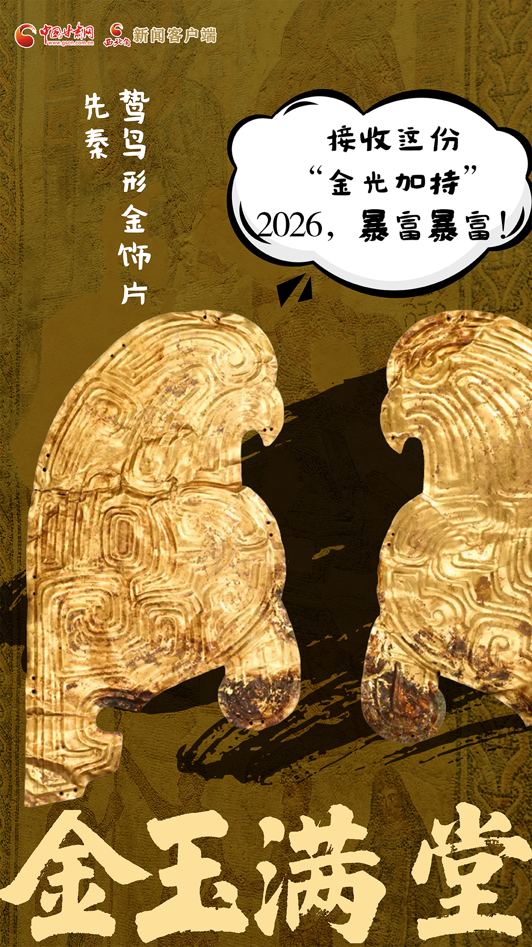 简介:这些金饰片是秦国早期国君棺椁或车舆上的装饰。鸷鸟造型威猛,体现了秦人对鸟图腾的崇拜,印证了“秦人东来”的学说,具有极高的历史与艺术价值。